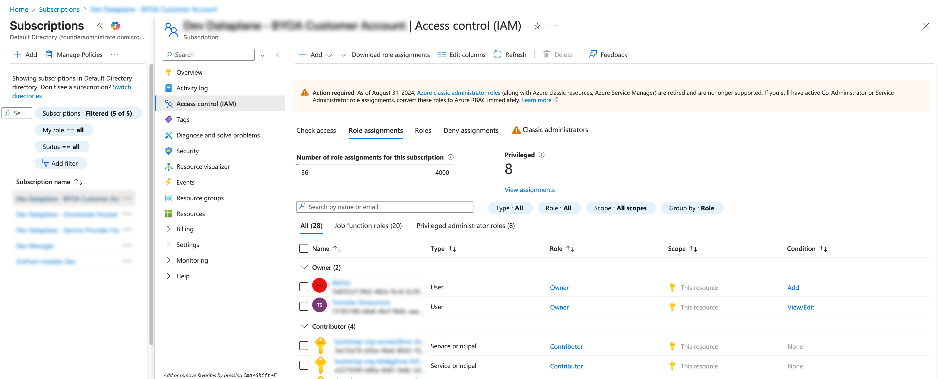 In addition, there are permissions required on the Azure AD level: - Privileged Role Administrator