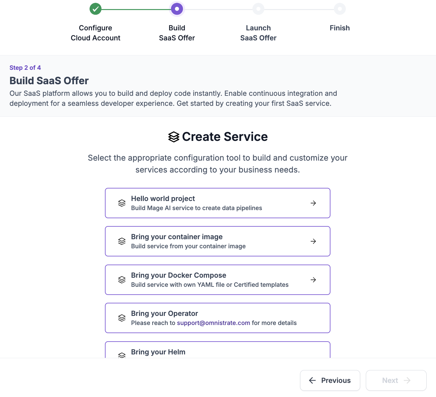 support@omnistrate.comto build a service with Kubernetes Operators, Helm Charts, Terraform, OpenTofu and more or follow our guides on how to onboarding with Omnistrate CTL.