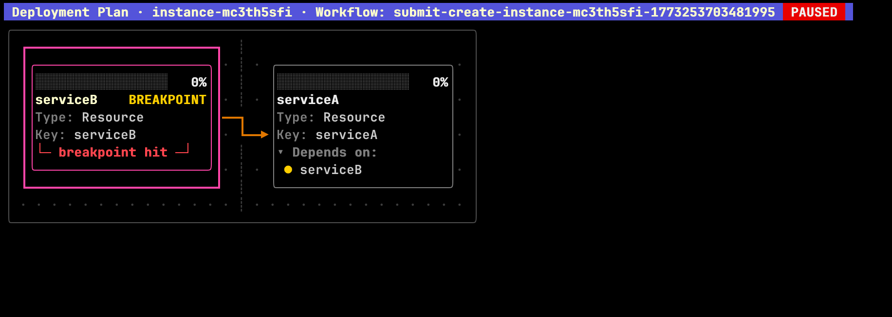 ┃ Breakpoint to resume: serviceB [r-POCvLQ9Bc5]